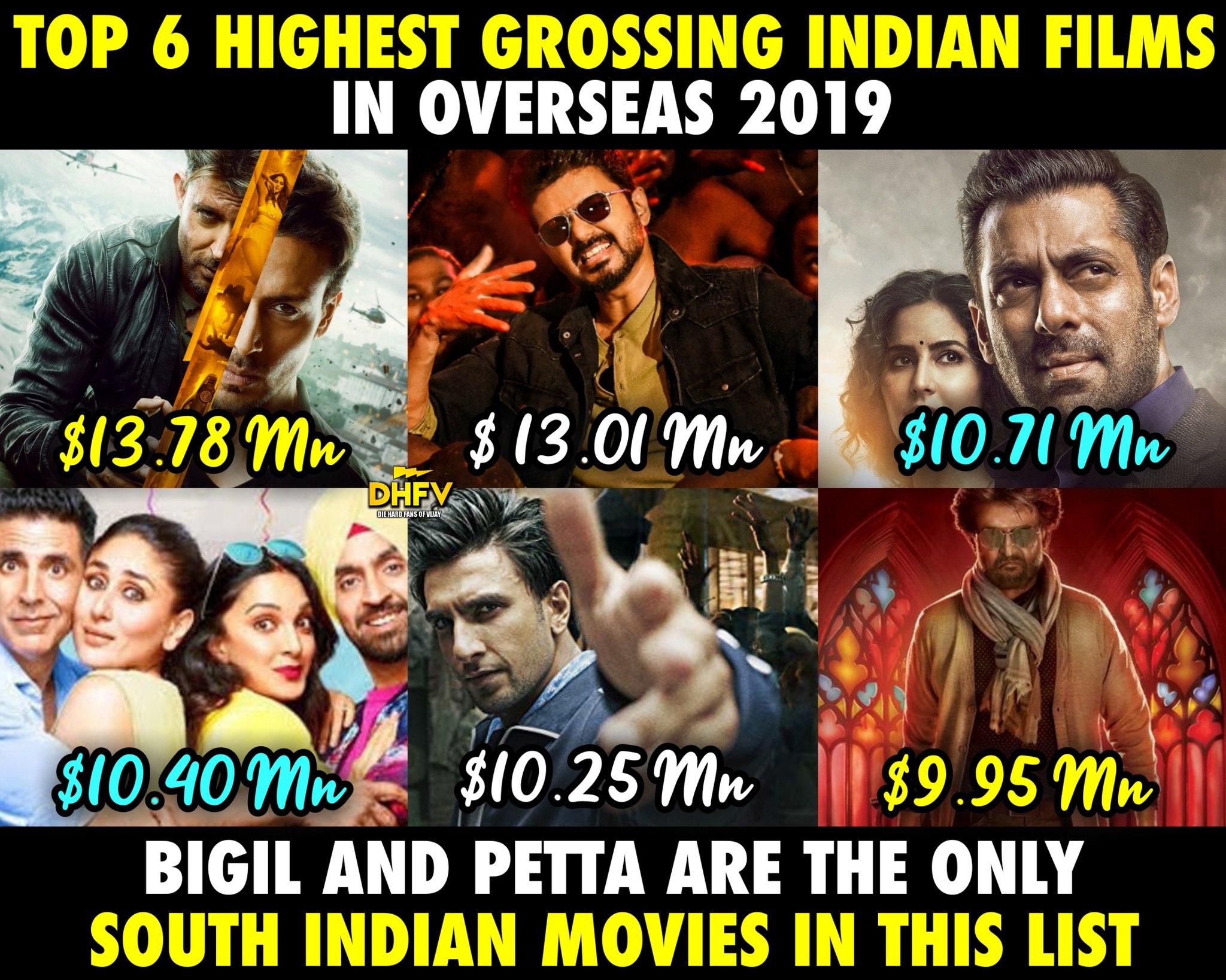 List Of Highest Grossing Bollywood Movies Overseas List Of Highest Grossing Bollywood Movies Overseas : This list includes only indian box office data.